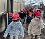 大津波警報が出された場合、比佐豆地神社、三重県神社庁が避難場所となっていることから、今回は、学校からの避難経路を確かめるために、2学年ずつで訓練しました。