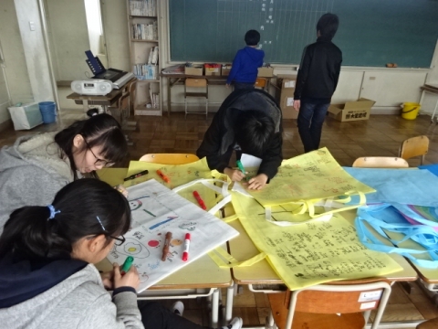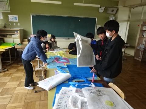 3年生 図工の作品バックを写真にとって先生におくり、互いにタブレット上で鑑賞できるようにしました。