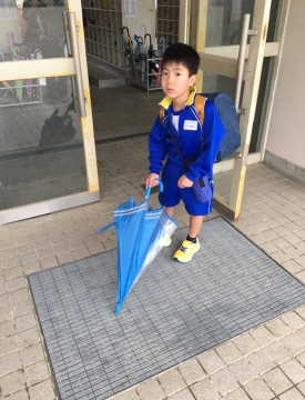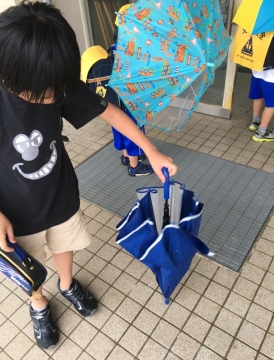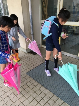 カサの水気をきちんととってから昇降口を入る子がたくさんいます
