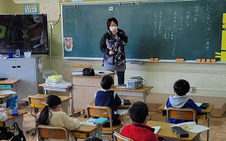 1年生は、国語で1年間の楽しかった出来事を思い出し、みんなで発表していました。