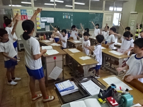 しっかり呼びかけをする1年から4年生の姿が、とっても大きく