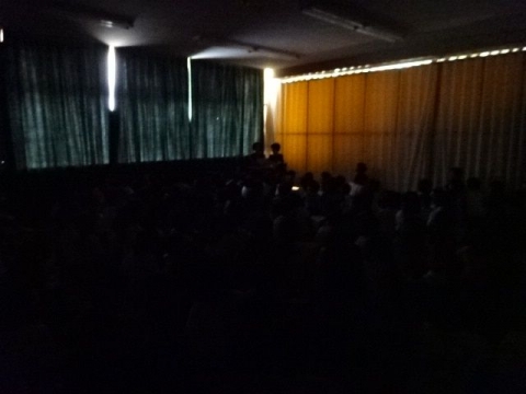 図書館サポーターのボランティアの皆さんの企画・運営で、ちょっと“涼しく”なるお話を読み聞かせをしてもらいました。こわくてもだいじょうぶな人という条件付きでしたが、たくさん集まり、会議室は満杯でした。
