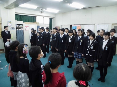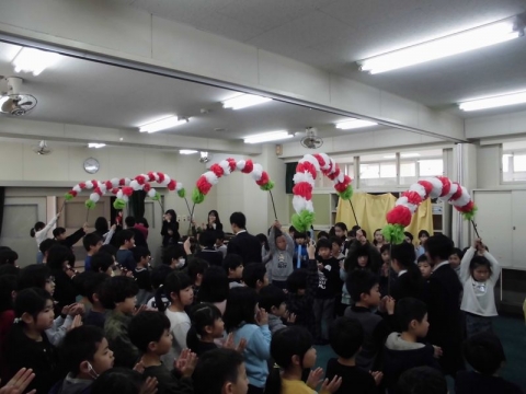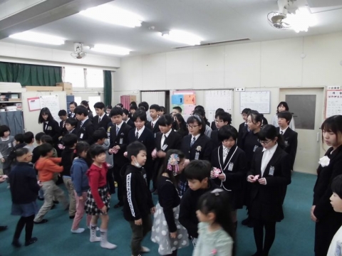 卒業式には出席しない1年生から4年生が、6年生とのお別れ式を