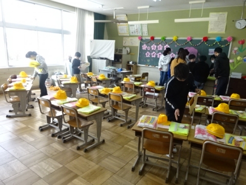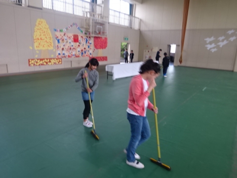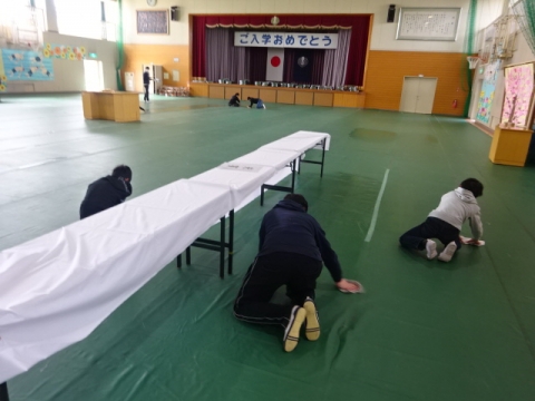 明日の卒業式の会場準備を4年、5年が作ってくれました