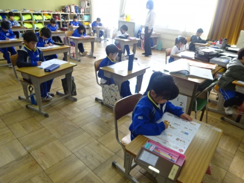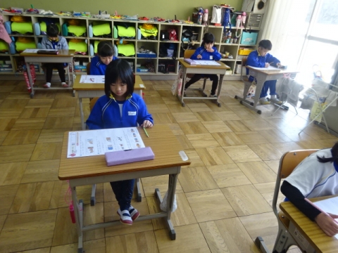 月曜日のお別れ式に向けて、1年から4年生が呼びかけや式の流