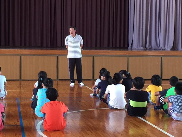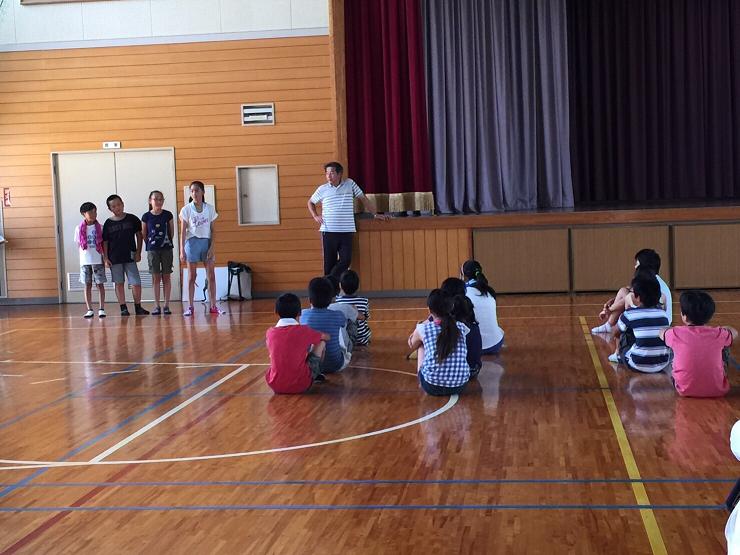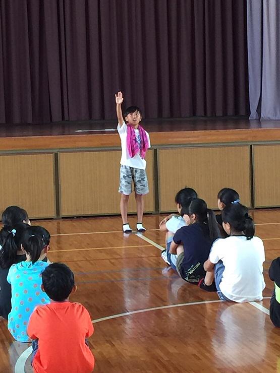 前田先生の話の後、宣誓です。「楽しいキャンプにします!」