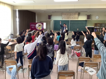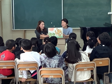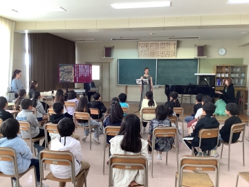 今日の2限目、図書館スクールサポーターの皆さんによる「歌の読み聞かせ」を3年生対象にしていただきました。内容は金子みすゞの詩「大漁」「星とたんぽぽ」「わたしと小鳥とすずと」など8作品を歌にのせてのミニコンサートです。3年生の子どもたちも徐々に金子みすゞの世界を想像しながらしっとりと聴いていました。コンサート後は、じゃんけんゲームや紙芝居を見ての楽しい時間もありました。この歌の読み聞かせは12月にも6年生対象に行う予定です。