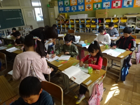 3年生 5年生 桜もずいぶん咲き、1学期のスタートかと見間違えしそうです。