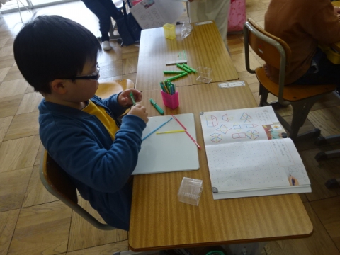 課題が早く済んだ子から、タブレットでプログラミング体験。