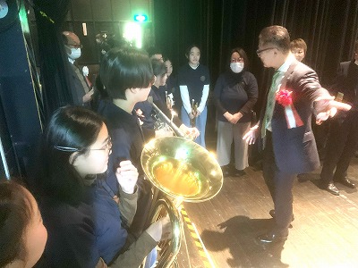 西橋内中学校から吹奏楽部の人たちが駆けつけて、演奏して華を添えてくれました。