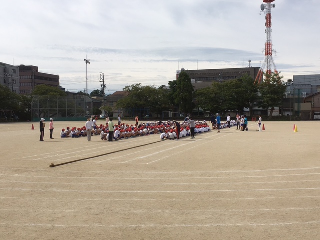 15(金)全校練習が始まりました。今日は、児童会種目の「綱引き」の練習です。