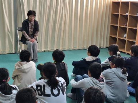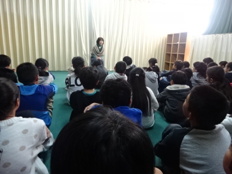 20.21日の二日間ポップコーンの皆さんに来ていただき、全学年ともお話し会をしてもらいました。読みき聴かせではなく、頭に覚えている長いお話を語ってもらいました。