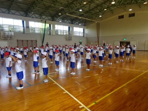 今日は、1年生から4年生までの子どもたちが6年生とお別れ式を行いました。