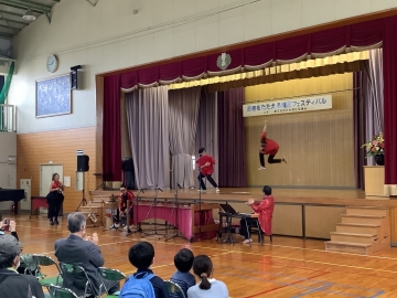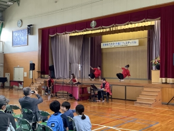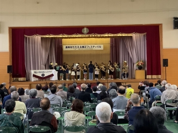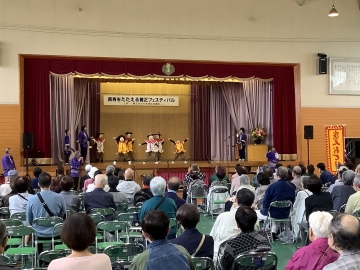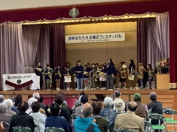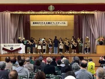 昨日10月26日(日)午後、養正小学校の体育館にて「養正地区長寿をたたえる敬老会」が開催されました。日頃から地域の方々へお世話になっている感謝の気持ちを込めて「金管バンドクラブ」の演奏と、養正小以外の子どもも含めた「子ども唐人おどり」が披露されました。途中に手拍子も起こるなど和やかで心温まる催しとなりました。他にも浅岡栄子さん率いるアンサンブル演奏やブレイクダンスも披露されるなど、とても楽しくて盛り上がった敬老会となりました。