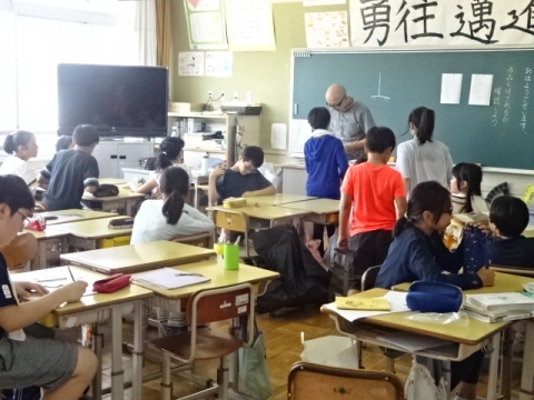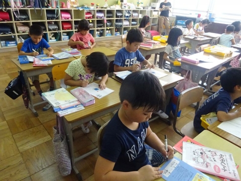 クラスでは新しい教科書をもらったり、宿題を出したり...。