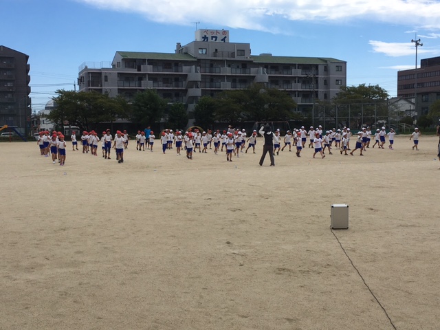 9/9(金)、とうとう3・4年生も運動場で練習です。まずは、ラジオ体操から。