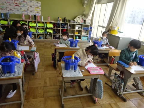 月曜日のお別れ式に向けて、1年から4年生が呼びかけや式の流