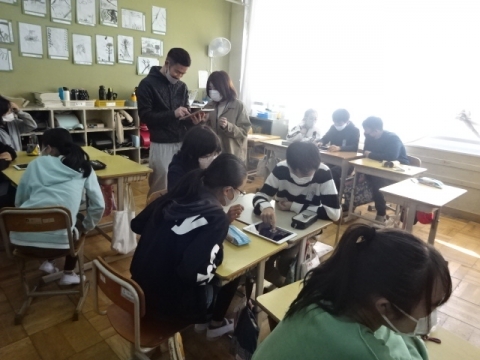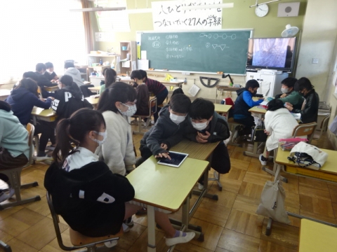 きょうはいつもの支援員さんとちがう人に来てもらい、動画のアップの手伝いや各学年の3学期の進め方の相談もしてもらいました。