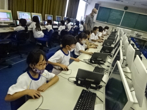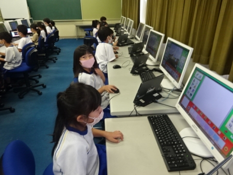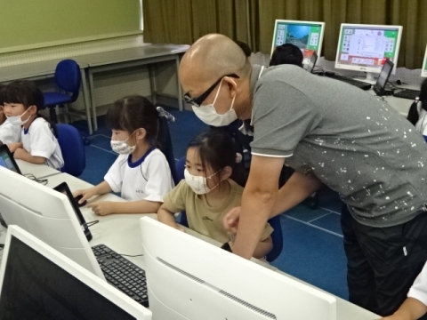 課題が早く済んだ子から、タブレットでプログラミング体験。