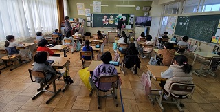 ※他校の児童も写っているので、ぼかしてあります。