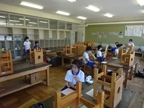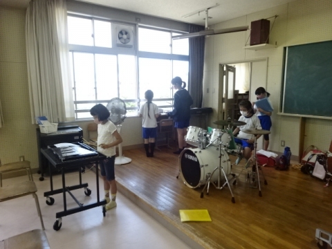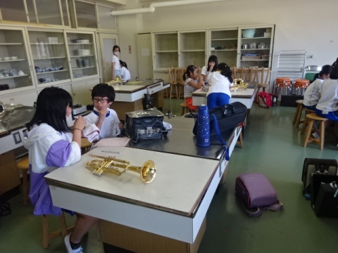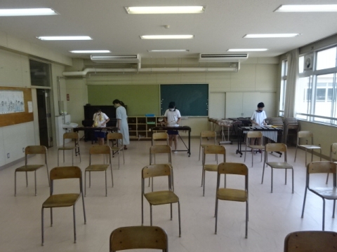中学校の部活動は6/1から再開していますので、その取り組みも参考にして、密にならない、対面で演奏しない、活動場所の消毒などの対策をとりながら段階的にすすめていきます。特別教室もエアコンがはいったので、場所も増やして間隔をあけられるようにしています。時間はまだ放課後だけです。