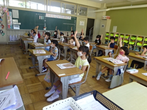 しっかり呼びかけをする1年から4年生の姿が、とっても大きく