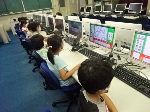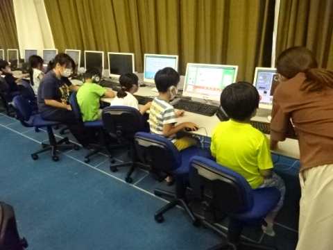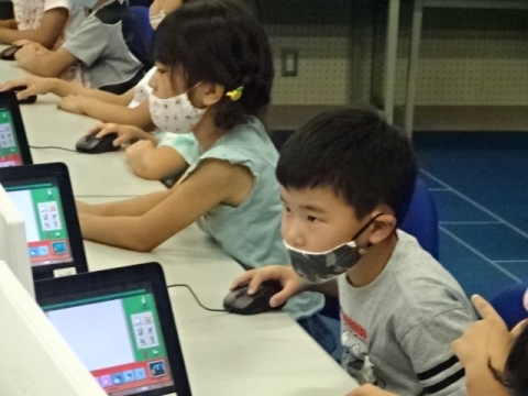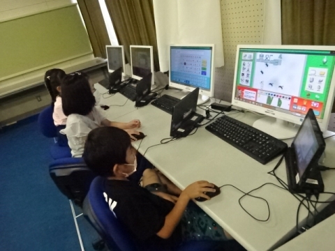 課題が早く済んだ子から、タブレットでプログラミング体験。