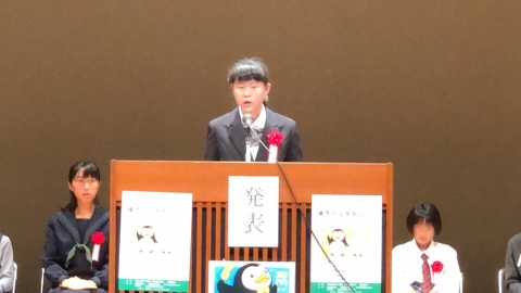 在校生から歌のプレゼントとお礼とお祝いの呼びかけを行いました。その中で次の年になりたい姿も発表しました。