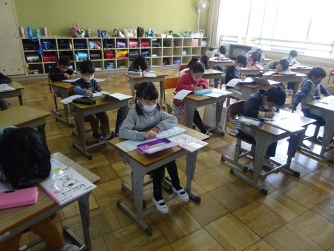 月曜日のお別れ式に向けて、1年から4年生が呼びかけや式の流