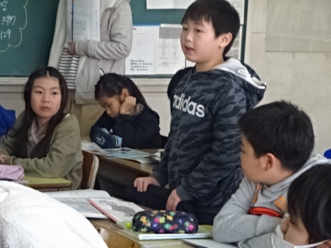 卒業式には出席しない1年生から4年生が、6年生とのお別れ式を