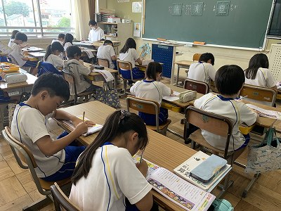 三年生の朝の学習時間 とても集中しています