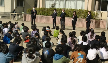 卒業式には出席しない1年生から4年生が、6年生とのお別れ式を