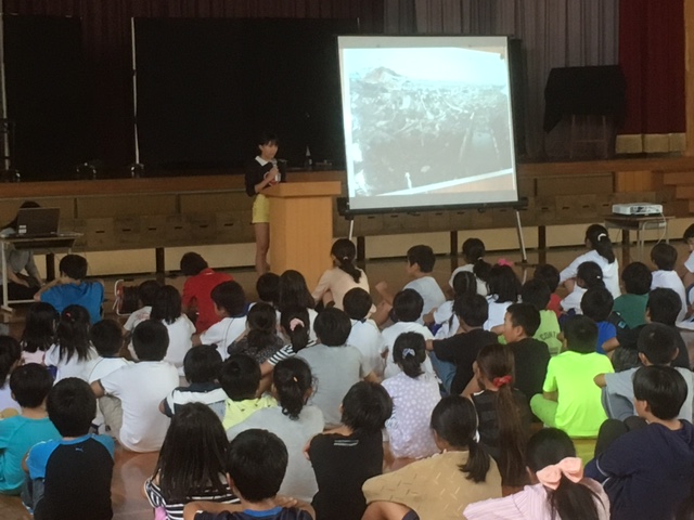 東日本大震災の被災地に取材に行った6年生の加藤さんの発表がありました。