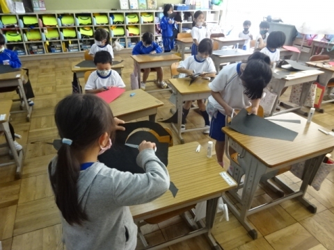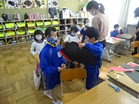 3年生 図工の作品バックを写真にとって先生におくり、互いにタブレット上で鑑賞できるようにしました。