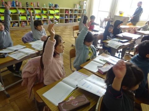 月曜日のお別れ式に向けて、1年から4年生が呼びかけや式の流
