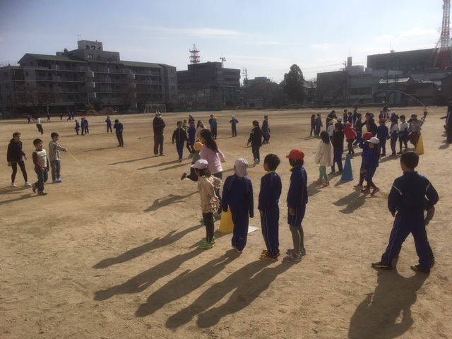 2/7(水)に開かれる「縦割り班大縄大会」に備えての練習が始まりました。