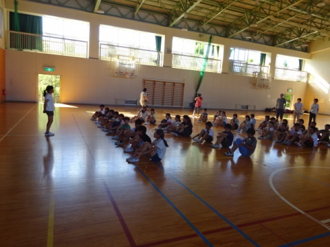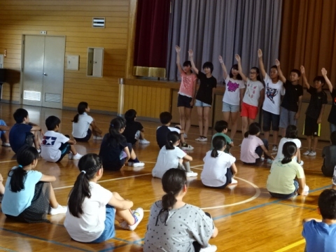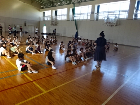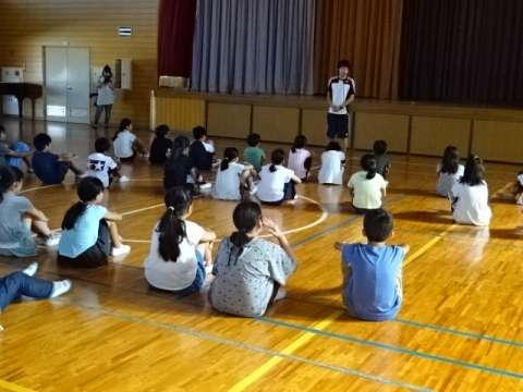 今日は、1年生から4年生までの子どもたちが6年生とお別れ式を行いました。