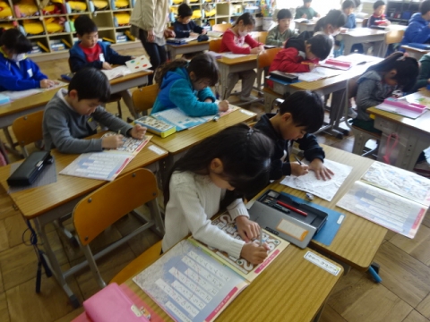 月曜日のお別れ式に向けて、1年から4年生が呼びかけや式の流