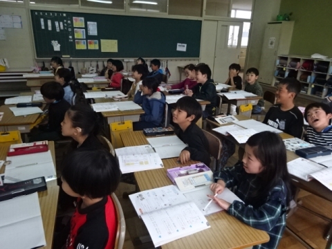 卒業式には出席しない1年生から4年生が、6年生とのお別れ式を