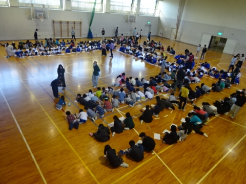 今日は、1年生から4年生までの子どもたちが6年生とお別れ式を行いました。