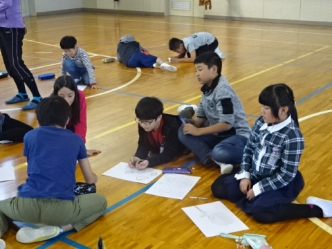 はじめは「え?」という感じで、多くの子がきょろきょろしていましたが、しだいに楽しく自分独自の想像力ですてきな作品を仕上げました。