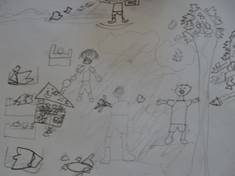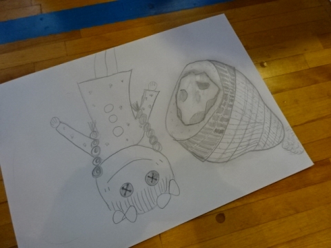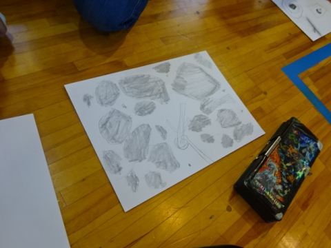 そのあと主人公のアストンのことや石のことを想像しながら、鉛筆だけで白い紙に絵を描きました。