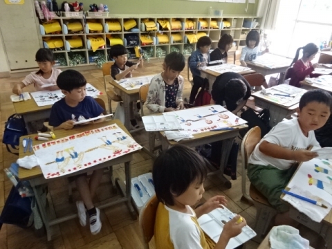3年生 図工の作品バックを写真にとって先生におくり、互いにタブレット上で鑑賞できるようにしました。