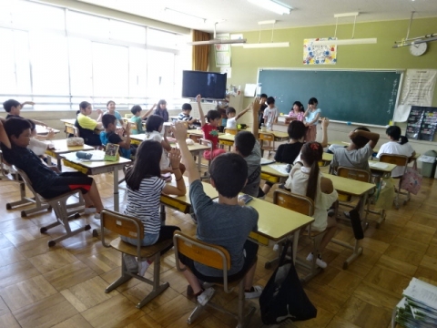 しっかり呼びかけをする1年から4年生の姿が、とっても大きく
