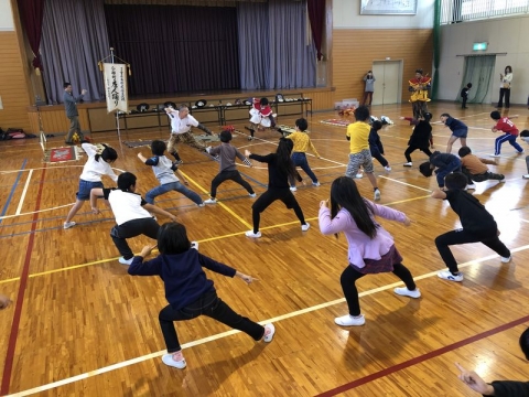 卒業式には出席しない1年生から4年生が、6年生とのお別れ式を