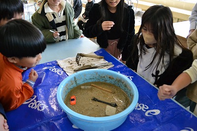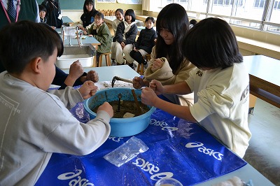 て話を聞いてから体験に向かいました。授業の始まりは、それどの