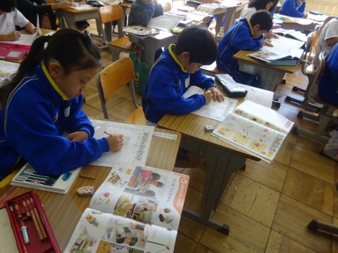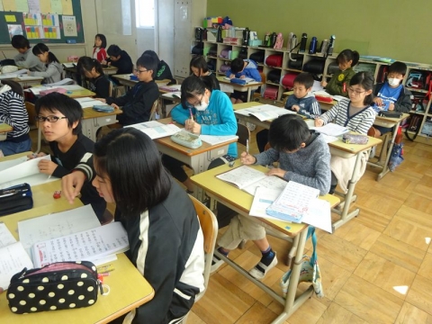 月曜日のお別れ式に向けて、1年から4年生が呼びかけや式の流