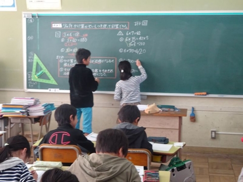 明日の卒業式の会場準備を4年、5年が作ってくれました
