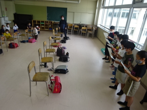 月曜日のお別れ式に向けて、1年から4年生が呼びかけや式の流
