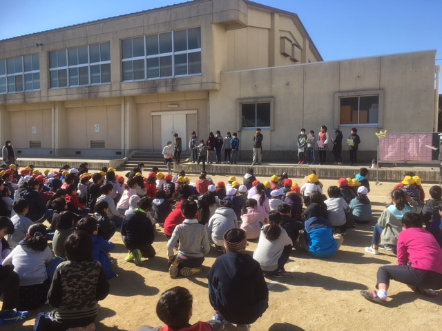 卒業式には出席しない1年生から4年生が、6年生とのお別れ式を